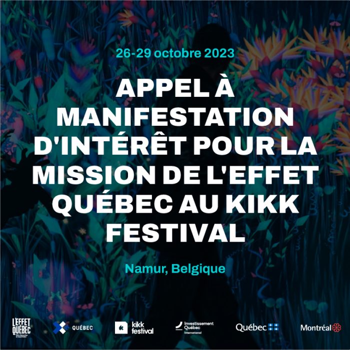 Création d’une délégation québécoise qui participera au KIKK Festival, à Namur, en Belgique, du 25 au 29 octobre 2023.
